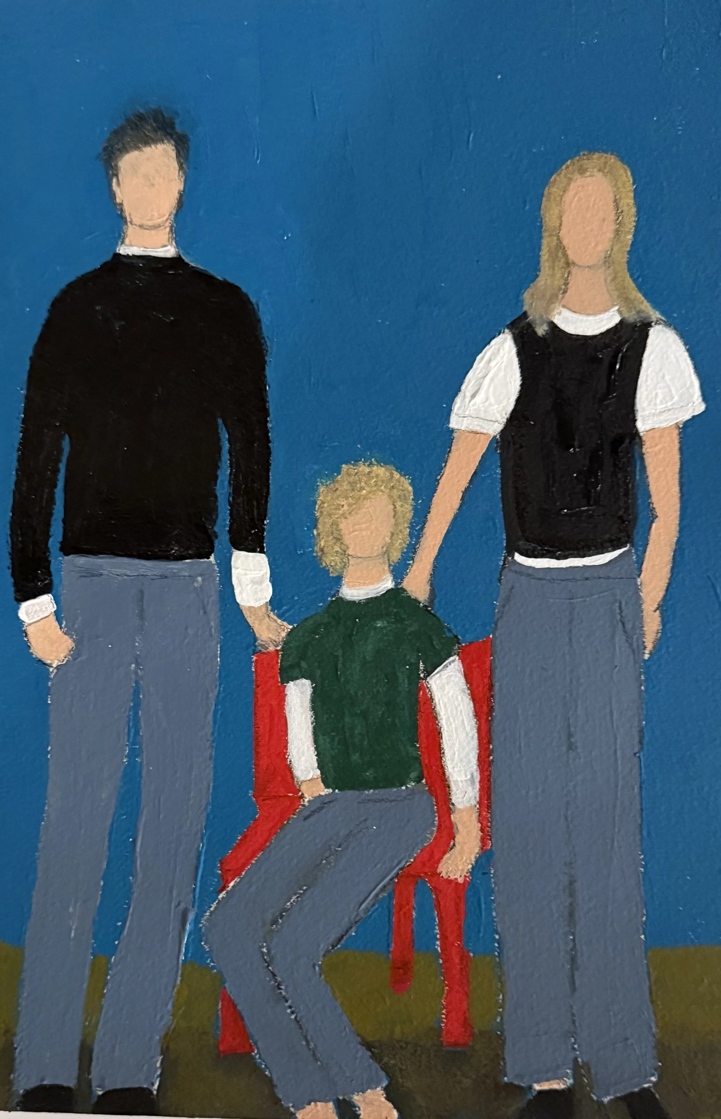 Joni Maloney is a Michigan-based artist whose work explores the human condition through abstract-realist portraiture. Each could be the first sentence of a story, quickly revealing something familiar and essential, but with an open-ended quality that imagines conversation of the why, the how, the what of that moment. Faceless yet not featureless, Maloney’s figures have an immediacy that invites lingering to feel the emotions their body language conveys. While celebrating individuality, we as individual viewers universally know, have been or could be this person in a moment in time. While in some cultures there is belief that a photograph or portrait “steals” the subject’s spirit, Maloney’s characters are anything but spiritless, their direct and open gaze an opportunity for us to look more closely to discover them.